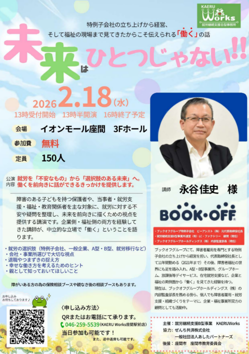 講演会『未来はひとつじゃない!』(就労継続支援B型事業所KAERUWorks主催)参加のお知らせ
